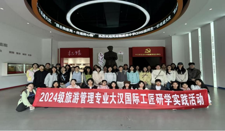 本网讯(旅游与航空管理学院 张茜 唐灿)2025年10月25日,湖南女子学院旅游与航空管理学院250余名学生走进大汉国际工匠院,开展课程校外实训,在大汉国际工匠院开启了一场沉浸式研学之旅。