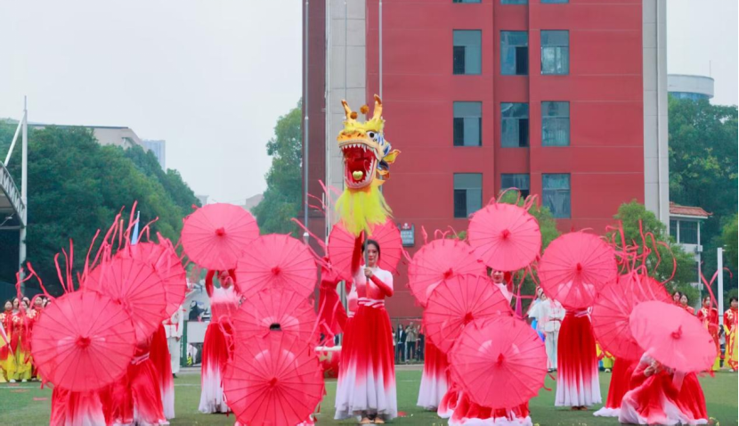 开幕式上,国旗护卫队迈着刚劲有力的步伐,各学院方阵依次入场,尽显昂扬姿态。在激昂的音乐声中,表演方阵宛如一幅锦绣画卷,徐徐铺展开来,令人心潮澎湃。我院学子意气风发,欢呼声响与鼓点节奏相互交织,瞬间点燃了现场的热烈氛围。展现专业特色的《礼仪操》优雅规范;融合舞蹈与武术的《龙吟九州》刚柔并济、气势恢宏;《扬帆启航》《大美中国》等节目则以青春歌舞抒发爱国情怀,彰显我院学子多才多艺、积极向上的精神风貌。